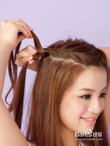 文艺风:将头发扎成半扎发,再在头顶编一个简单的三股辫,增添一丝文艺气息。